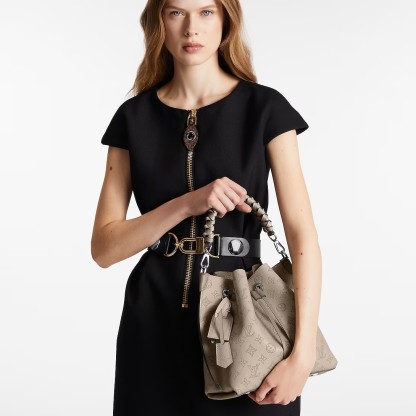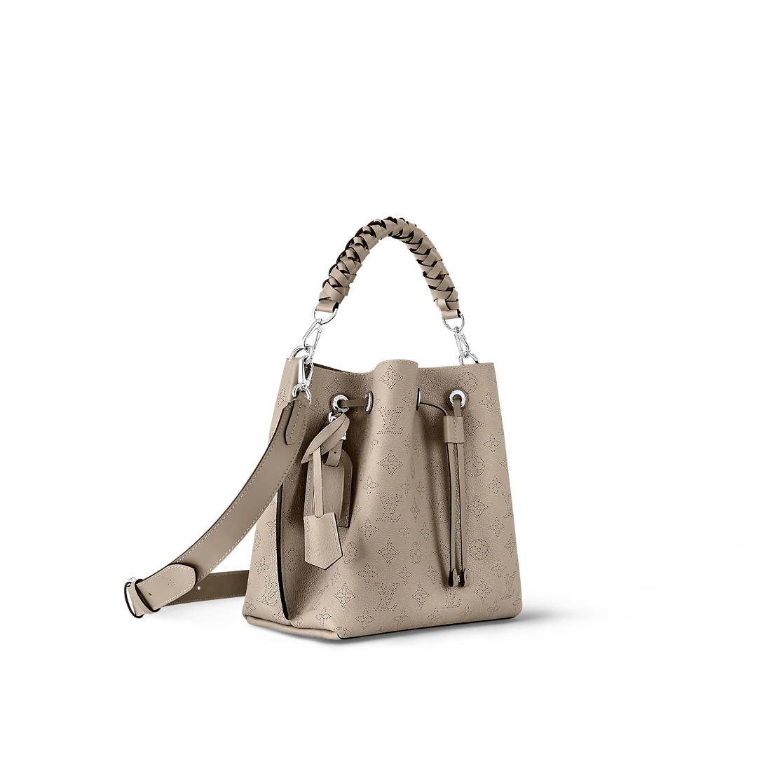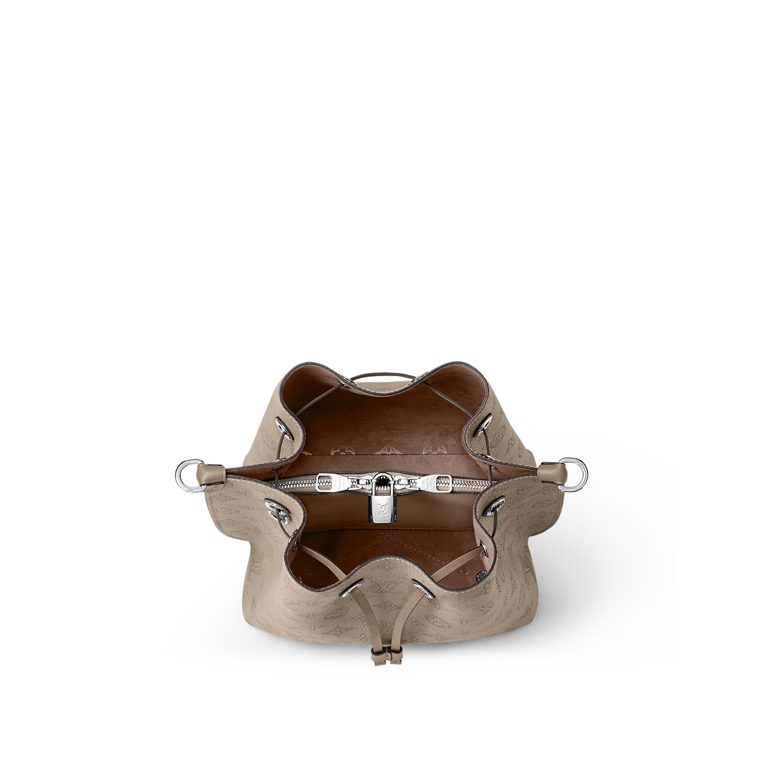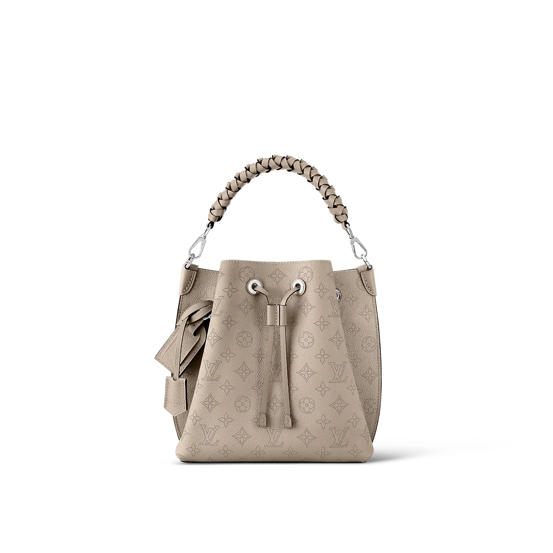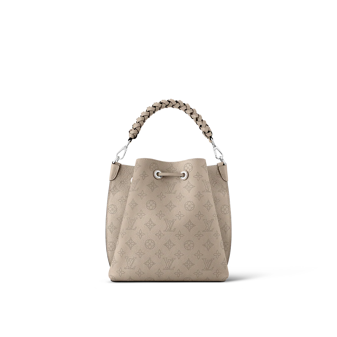 The Muria bucket bag is made from Mahina calf, a perforated leather with a discreet Monogram motif. Supple and sophisticated, it is a pleasure to carry, either by the braided top handle or the long leather strap, which adjusts for short- and long-shoulder or hands-free cross-body wear. Crafted signature details include a name tag and keybell in smooth calfskin.