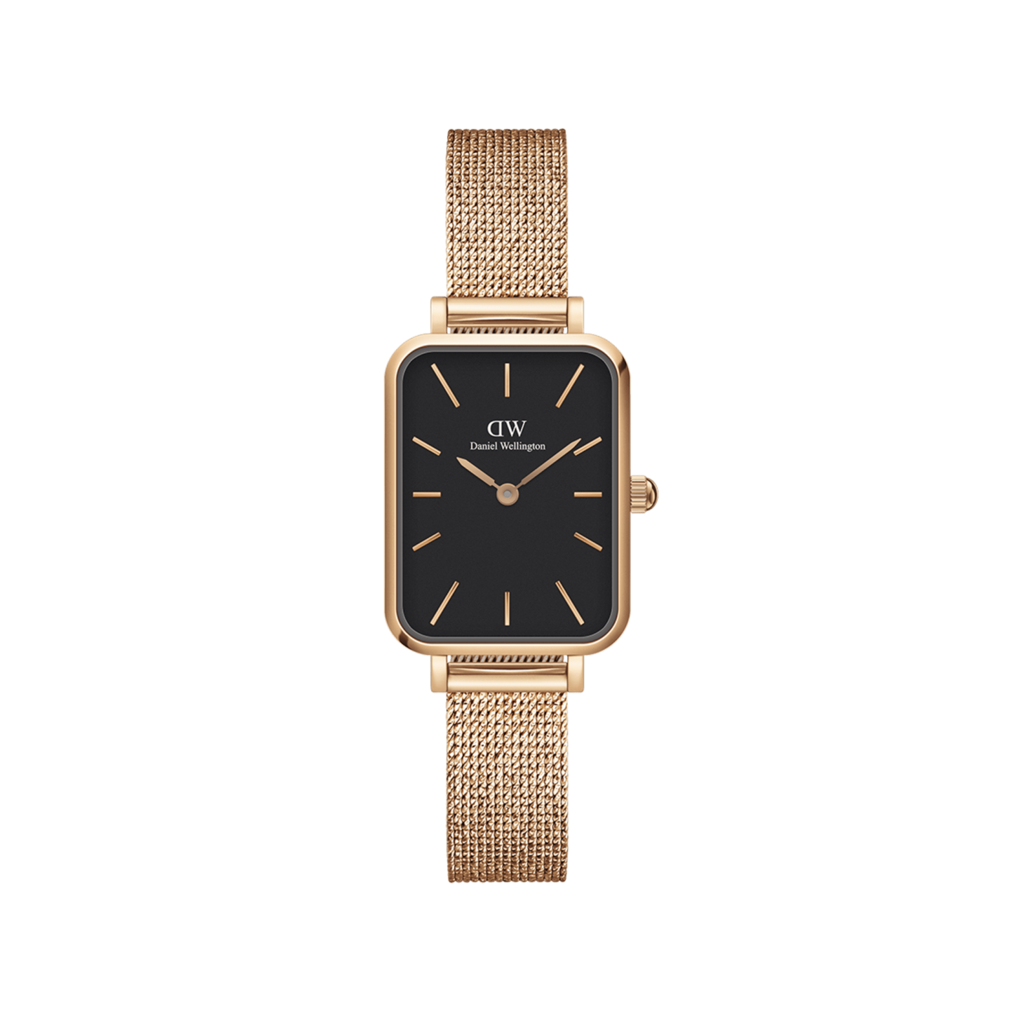 The Quadro is our first square dial timepiece. Crafted with polished stainless steel and available in a refined rose gold plating or vibrant silver finish. Choose between the option of a white, black, or green patterned dial and a selection of pressed mesh or pressed leather straps. Elevate your look with a unique edge.