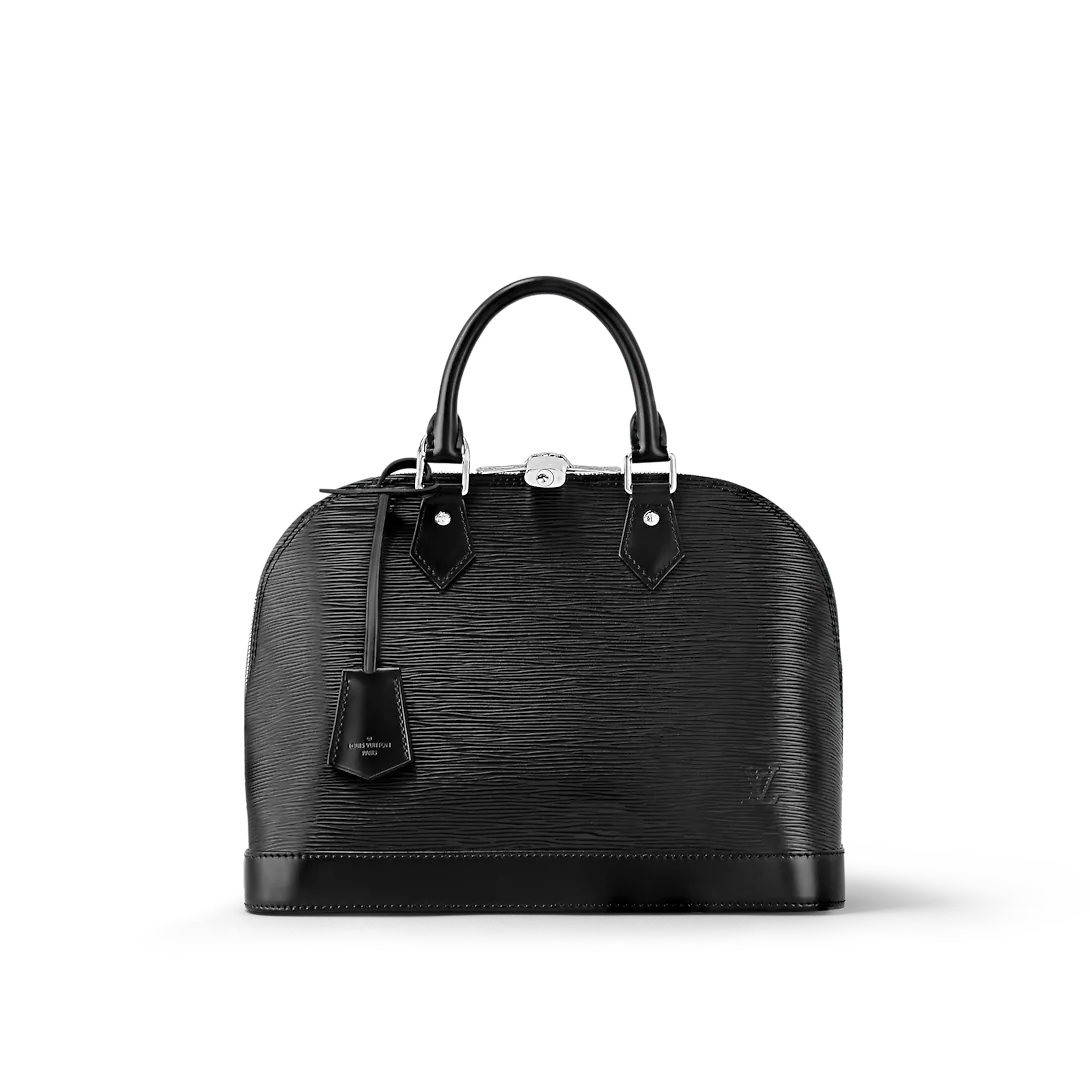 A timeless House icon, the Alma PM handbag is perfect for every day. Its structured lines recall the Art Deco original, designed in 1934. Made from deep-dyed, textured Epi leather, this model displays refined craftsmanship in every detail, from the hand-stitched Toron handles to the siLthtVery hardware and signature key bell. Always elegant, carried by hand or on the elbow.